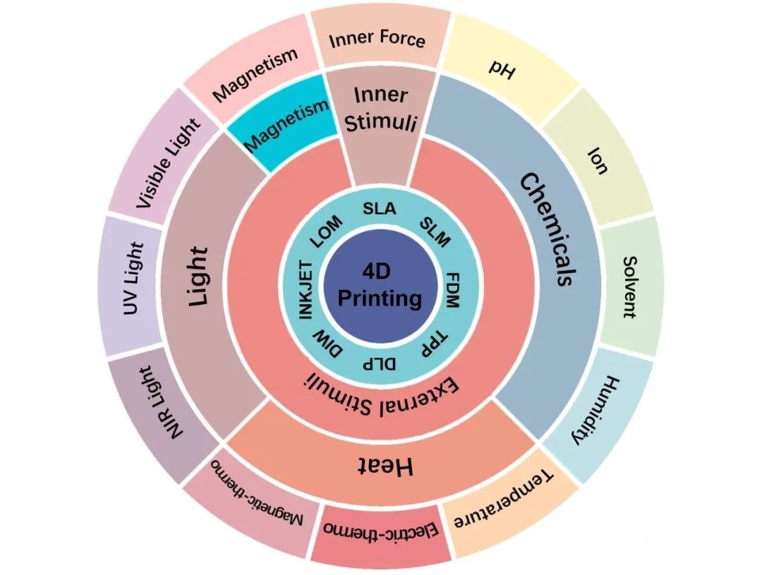 近期,浙江大学梅德庆/汪延成教授团队与美国乔治华盛顿大学Lijie Grace Zhang教授团队合作,在国际期刊Advanced Materials (IF=30.849)上在线发表题为“Emerging 4D printing strategies for next-generation tissue regeneration and medical devices”的长篇综述论文,分析并总结了面向下一代组织再生与医疗器械的4D打印技术及应用的研究进展。 4D打印技术是指在预定刺激下,3D打印的功能结构可在形状、属性和功能上进行时间维度上的自我转换。4D打印已广泛应用于柔性电子、软体机器人、生物医学支架、药物递送等领域,受到学术界和工业界的极大关注。本论文主要综述了1) 4D打印工艺分类;2) 4D打印的结构设计;3) 4D打印聚合物材料,如形状记忆聚合物(SMPs)、液晶聚合物(LCP)、刺激响应水凝胶等;4) 形状变化或功能转变的刺激响应机理;5) 4D打印支架/构造和装置等方面的最新研究(如血管组织再生和支架、心脏补片和瓣膜、脑组织重建、神经支架和导管、骨支架、肌肉再生和气管植入器械等)。在此基础上,讨论了有关4D打印的监管和商业化进展,总结了当前存在的技术挑战和发展趋势。 图1:4D打印工艺的刺激源可分为内部刺激和外部刺激,以及内应力、磁性刺激、光刺激、热刺激和化学刺激五大类及其子类型 传统3D打印的生物支架,细胞是铺设在支架上的。由于重力作用,细胞通常会在支架的不规则表面呈现非均匀分布。4D生物打印能通过对支架的刺激改变其形状,这为解决支架表面细胞不均匀沉降问题提供了一种新方法。4D打印医疗器械的另一优点是能够在微创手术中减少原位创伤,显著提高患者舒适度。考虑到损伤组织的形状不规则,在手术中植入3D打印结构使其完美贴合损伤组织仍是一大挑战,采用4D打印支架通过变形效应促进支架与缺损组织的无缝融合,能有效解决这一难题。此外,由于4D打印结构具有可变形状能力,这也为打印制造下一代生物医学器械提供了可能,包括自紧缝线、血管支架、神经支架、药物递送载体、生物传感器和生物驱动器等。在综述论文中,主要讨论了近期关于体外组织构建和体内植入的4D打印细胞支架和医疗器械的研究,以阐述其潜在的临床应用。但我们也不难发现现阶段4D打印医疗器械仍处于研发阶段,并未开展临床试验,更多的体外和体内实验仍有待进一步开展。 综上所述,4D打印用于生物医学应用是一个新兴的研究领域,已证明其在下一代组织工程和生物医学器械的突出潜力。虽然该领域还存在若干挑战,多学科的交叉与合作将会加快推进4D生物打印技术的发展,并最终实现其临床转化。 图2:4D打印组织再生示意图 (原文链接//new.qq.com/rain/a/20211230A01IXQ00)