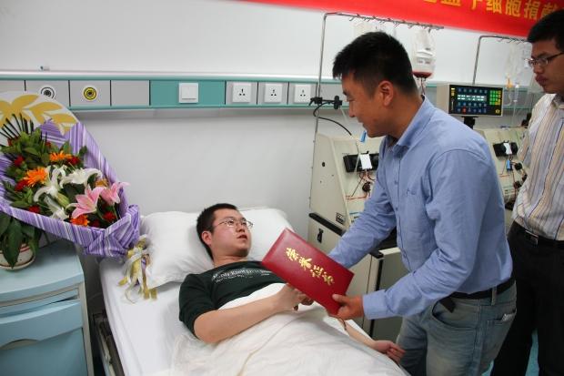 罗欢同学成为我校首位捐献造血干细胞志愿者,挽救了一名患有白血病的解放军战士的生命。