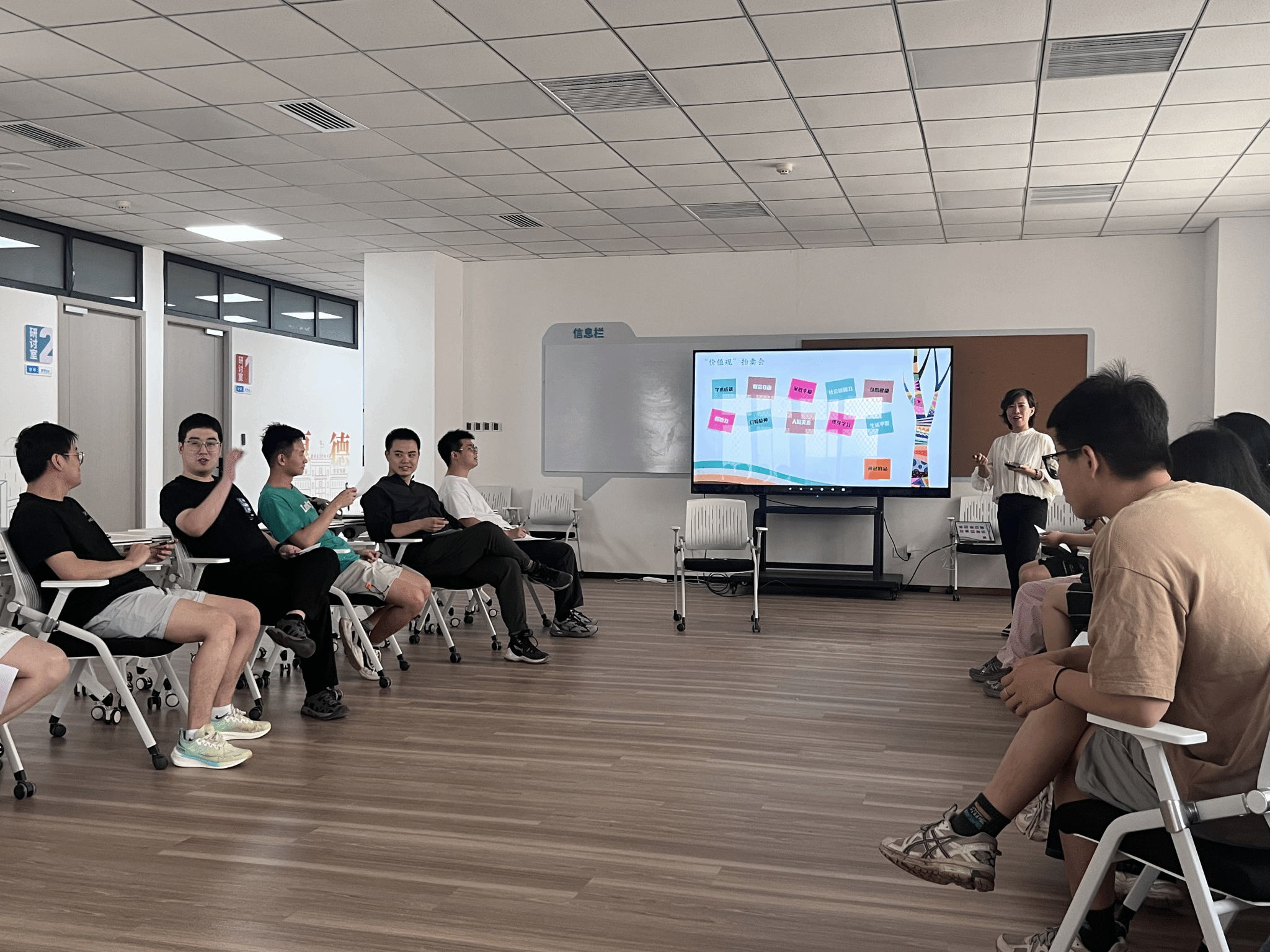 在特色环节“拍卖会游戏”中,杨姗老师引导参与者通过虚拟货币竞拍“身体健康”、“家庭幸福”等象征性标志。该环节采用非竞争性互动机制,要求学生在有限资源下进行动态价值评估,促使研究生直面内心真实诉求。