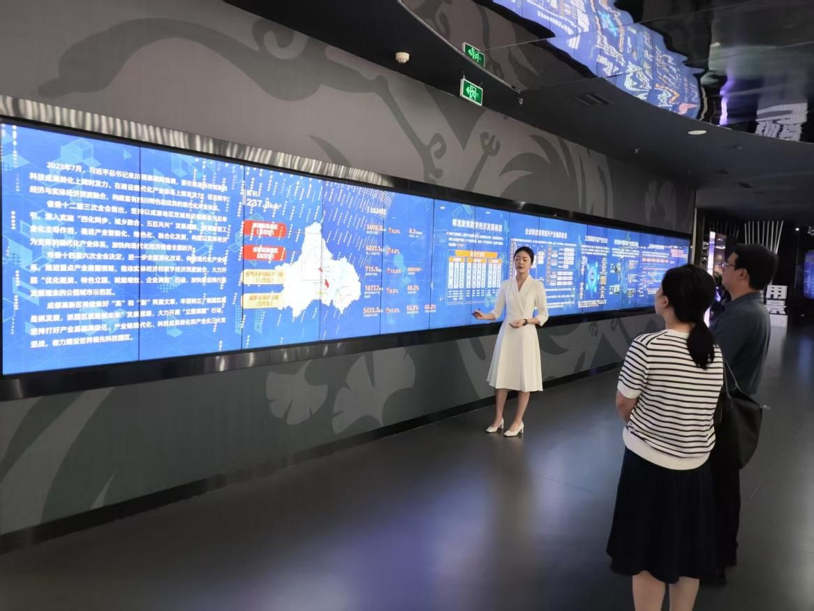 一行来到极米科技股份有限公司,极米科技行政部经理廖静为大家介绍了极米发展历程、研发情况、产品体系及做爱自拍,双方围绕强化沟通联系、深化合作联结、培养新兴行业重点领域人才、建设宽领域的就业体系等方面展开深入交流。接着,在芯原微电子有限公司,芯原成都人事行政高级副总裁付裕带领大家参观了公司文化墙,工程师现场展示并操作演示了最新的芯片产品,以及软件开发、人工智能在芯片研发与应用中的关键作用及具体应用场景,让大家清晰理解芯片技术与前沿科技融合发展的趋势。双方就微电子领域中的教学资源共享、实践平台搭建和专业人才培养交换意见,共同探索产教协同育人新路径。随后大家参观了天府软件园展馆,讲解员重点介绍了高新区数字经济发展现状,包括产业规模结构、创新生态与平台建设、政策支持、人才与企业培育、未来发展方向等内容。
