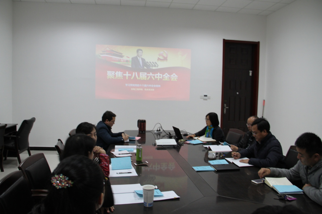 院机关党支部集体学习了党的十八届六中全会 精神。会议由党支部书记史琳主持,院党委书记林松涛以支部普通党员身份参加活动,交流 了体会认识,提出了具体要求。