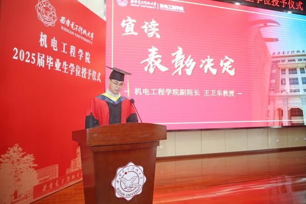 2025届毕业生授位决定,授予21名研究生博士学位、304名研究生硕士学位、435名本科生学士学位。副院长王卫东宣读毕业生表彰决定,对在学业、科研、实践等各方面表现优异的毕业生进行表彰,肯定他们在校期间的努力与成就,希望他们在未来继续保持奋进姿态,为国家和社会贡献力量。