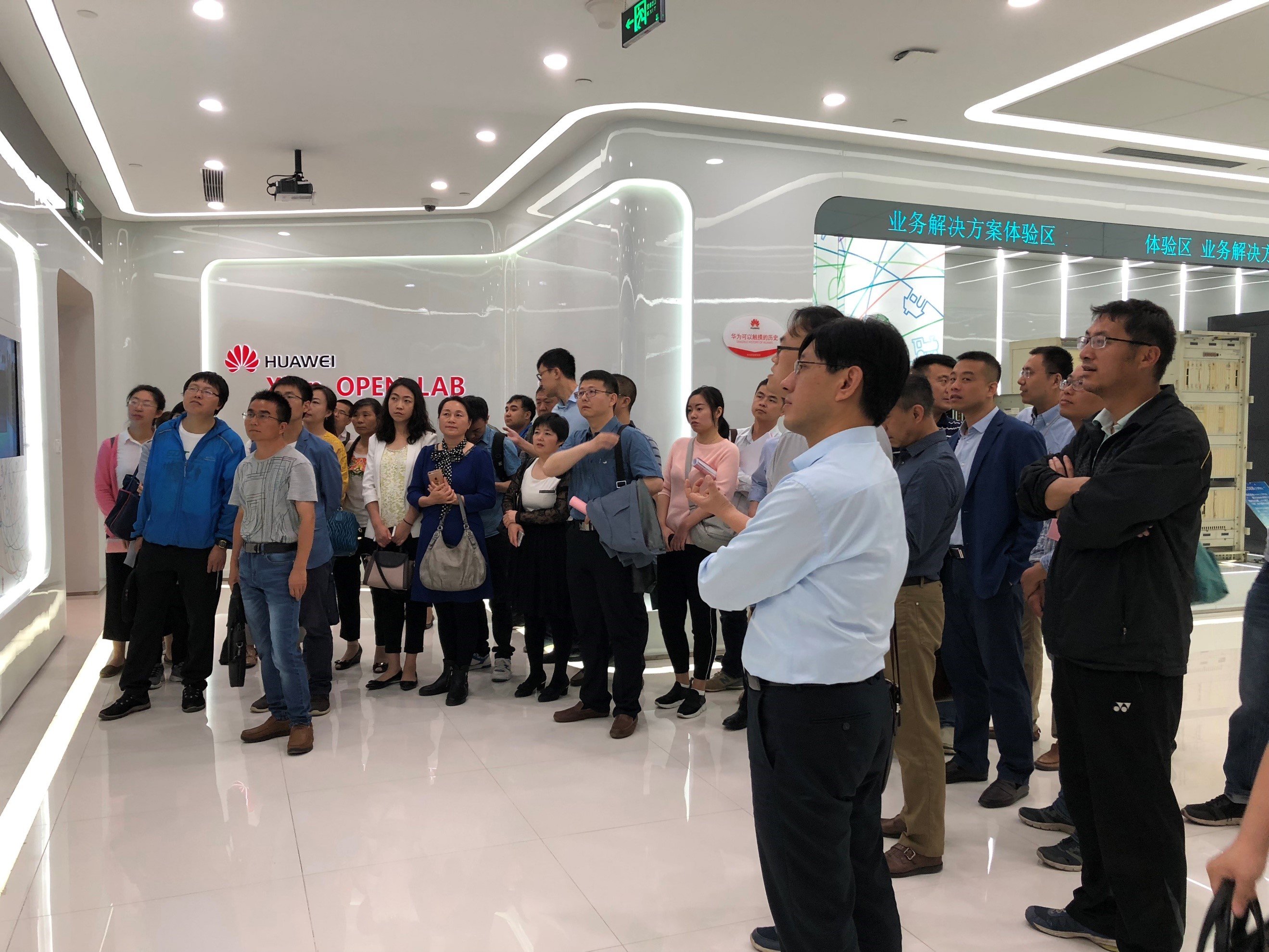 华为西安研究所合作处处长郭永强等陪同机电院代表参观了华为西安研究所Open Lab、工作休闲区和技术实验室,并对华为西安园区的规模、发展及作用进行了介绍与讲解。