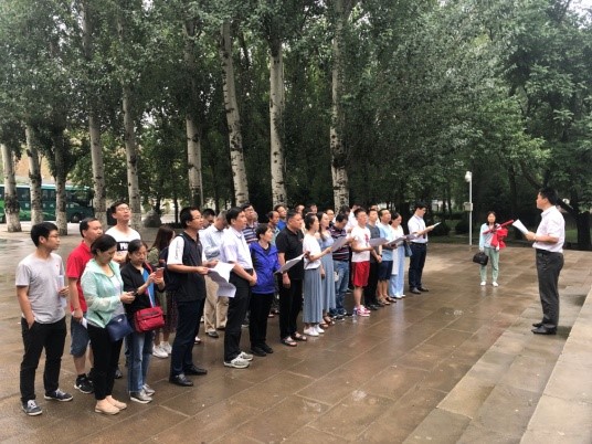 “因为我们是为人民服务的,所以,我们如果有缺点,就不怕别人批评指出。不管是什么人,谁向我们指出都行。只要你说得对,我们就改正。你说的办法对人民有好处,我们就照你的办。”7月16日下午,全体学员在延安市为人民服务广场(张思德纪念广场),齐声诵读了毛泽东主席的著名演讲《为人民服务》,共同缅怀张思德同志,砥砺为民服务初心。