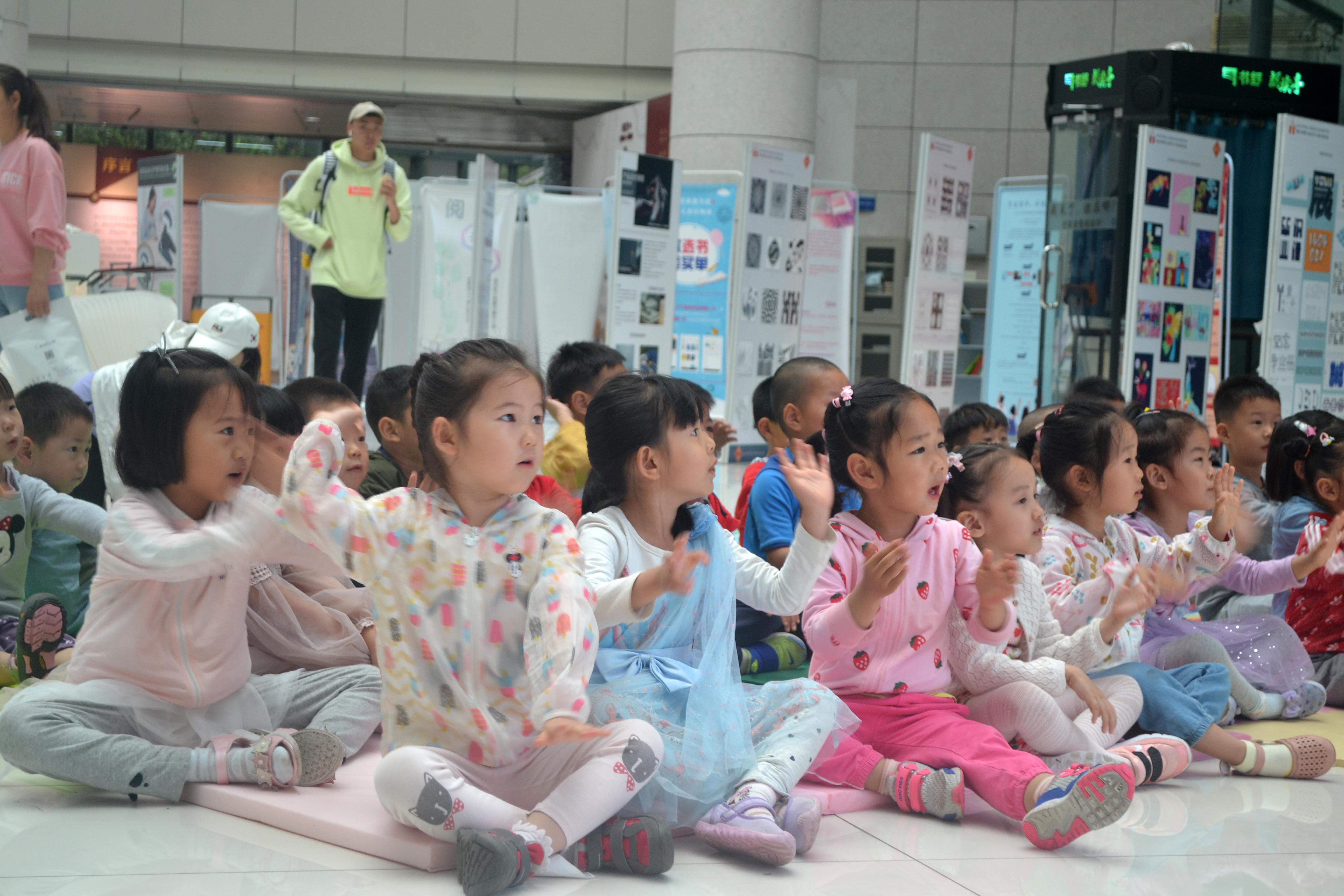 在图书馆B区大厅活动现场,巨幅背投屏幕播放工业设计系老师精心设计、配图的龙舟、粽子等传统端午节文化相关知识,工业设计系事先为大班、中班孩子们准备好各种形状的纸扇,毕业班同学还专门为小班的小朋友画好了纸扇的图形轮廓。大厅中间是充满科技和现代感的做爱自拍