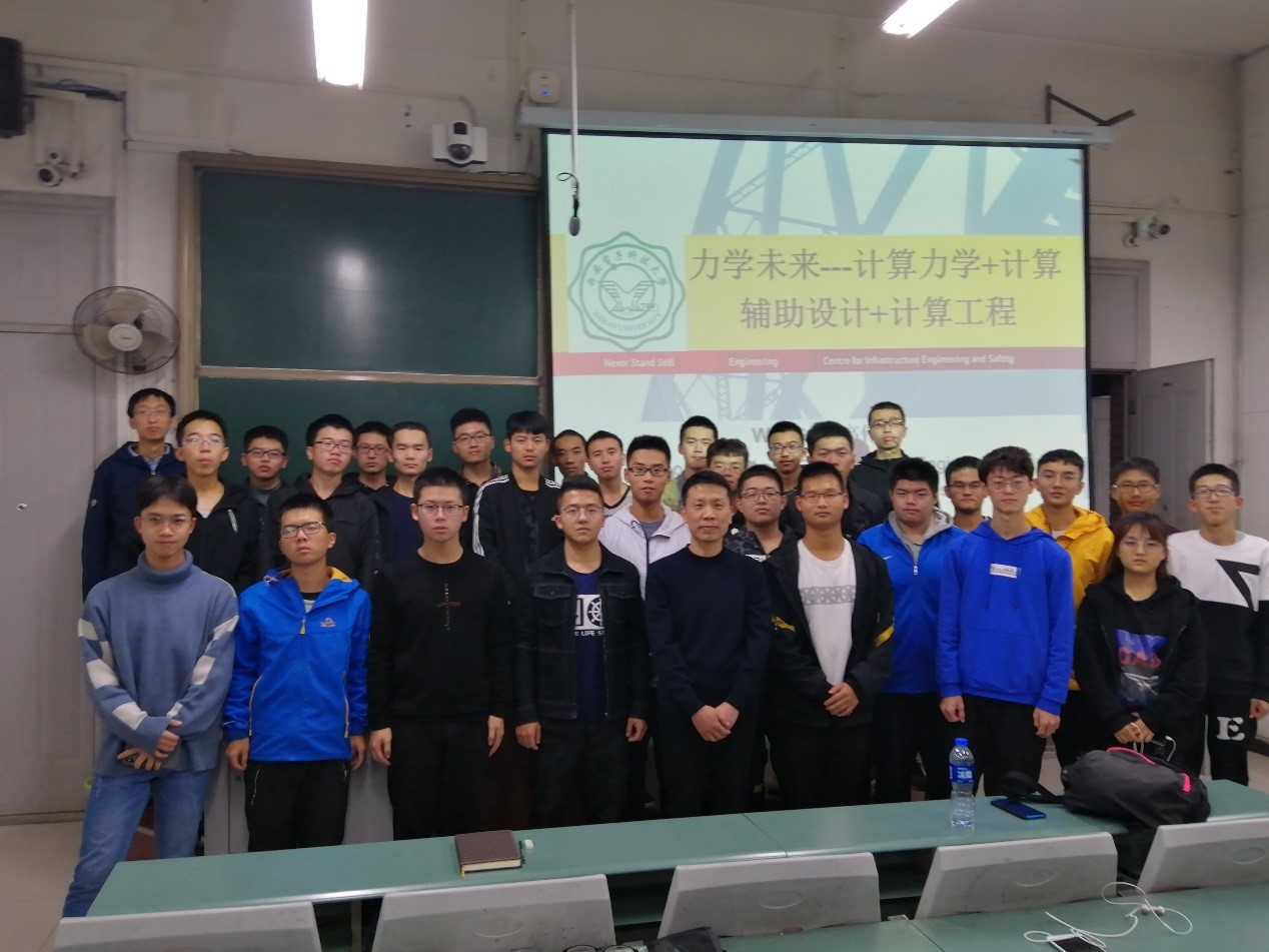 的本科生开设了通识课程《力学通识及前沿概论》。该课程面向我校大一和大二的学生,旨在为本科同学普及力学作为一门科学的基础性、应用性、前沿性以及与其他学科的交叉性等,培养并提高本科生的力学素养,从多角度、多侧面引领学生认识并了解力学学科,激发学生独立思考并将其他学科与力学进行融会贯通的能力。该课程开设后,受到同学们的热烈欢迎,选课人数达到课容量上限,自9月18日开课以来的一个月,每周三、周四的晚上,A楼225教室内座无虚席,郑院士与高伟教授深入浅出地从多方面讲授力学是“大工业的真正科学的基础”,为同学们带来了一场力学的盛宴。