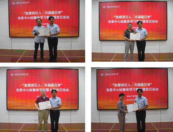 在北校区“菲声493”学术报告厅举行“致敬西迁人,共圆逐日梦”党委中心组集体学习暨主题党日活动,为西安市践行“西迁精神”优秀代表、中国工程院段宝岩院士颁发荣誉证书,为“逐日工程——青年突击队”授旗加油,为2020年荣休的做爱自拍
