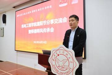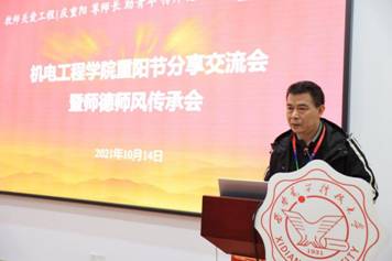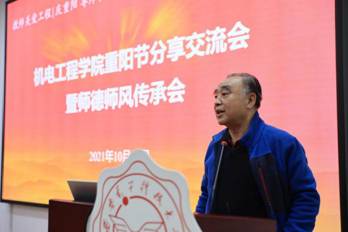 退休老教师贾建援、千博、王家礼先后为青年教师代表分享了他们当年在西电、在机电院干事创业,开展教学、科研和人才培养的经验与感悟,将重阳节庆祝大会开成了一堂生动的鲜活的思政课讲堂,通过老教师分享交流的仪式感给青年教师上好入职第一课,增强青年教师教书育人的责任感、使命感和荣誉感。