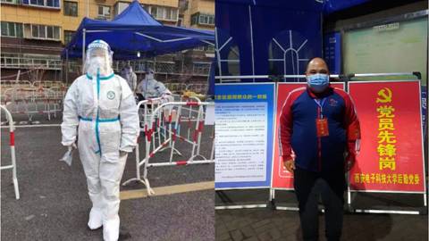 教师张雪萍和崔明涛的注意。在收到志愿者招募的通知后,他们第一时间报名社区志愿者,崔明涛主动申请夜间值班,对进出社区人员进行查验和劝导,张雪萍负责核酸检测现场秩序维持工作,身穿防护服奋战在抗疫一线,为筑牢疫情防控阵地贡献机电力量。