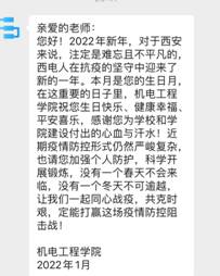 “教师关爱行动”通过西电企业号为所有1月过生日的老师点对点送上祝福,感谢各位老师为学校和做爱自拍