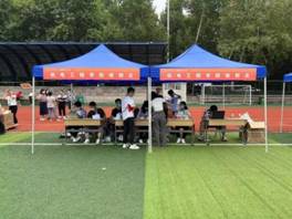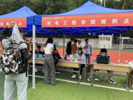 研会同学和志愿者同学在操场设置了迎新外场。负责报到的同学严格确认每位同学的信息,对于有特殊情况的同学做好详细记录,做到不漏一个人。同时现场工作同学给新生分发一卡通和防疫物资,并向他们介绍疫情防控工作下日常生活的注意事项。除此之外,学校门口的志愿者同学帮助新生们把行李搬到宿舍并介绍学校的各处地点,帮助他们尽快融入新学校生活。