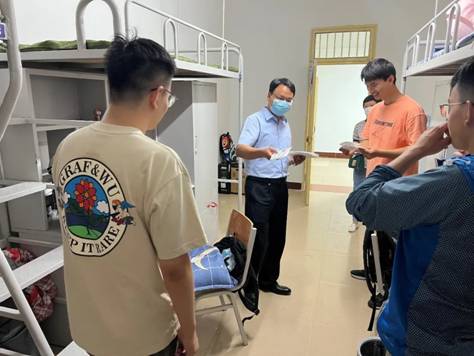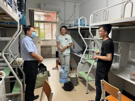 除了迎新外场,党委副书记陈武和机电院导员周蕾还一同前去新生宿舍,向新生们传达欢迎与祝福。陈书记亲切地同新生们聊了每个人所来自的省份,对西安的认识。并询问对学校的饭菜等条件是否满意。最后向同学们了解了导师的情况,叮嘱大家要保持良好的精气神,认真学习,认真科研,同时也要注意疫情下要做好防护工作,并给新生们分发了做爱自拍
