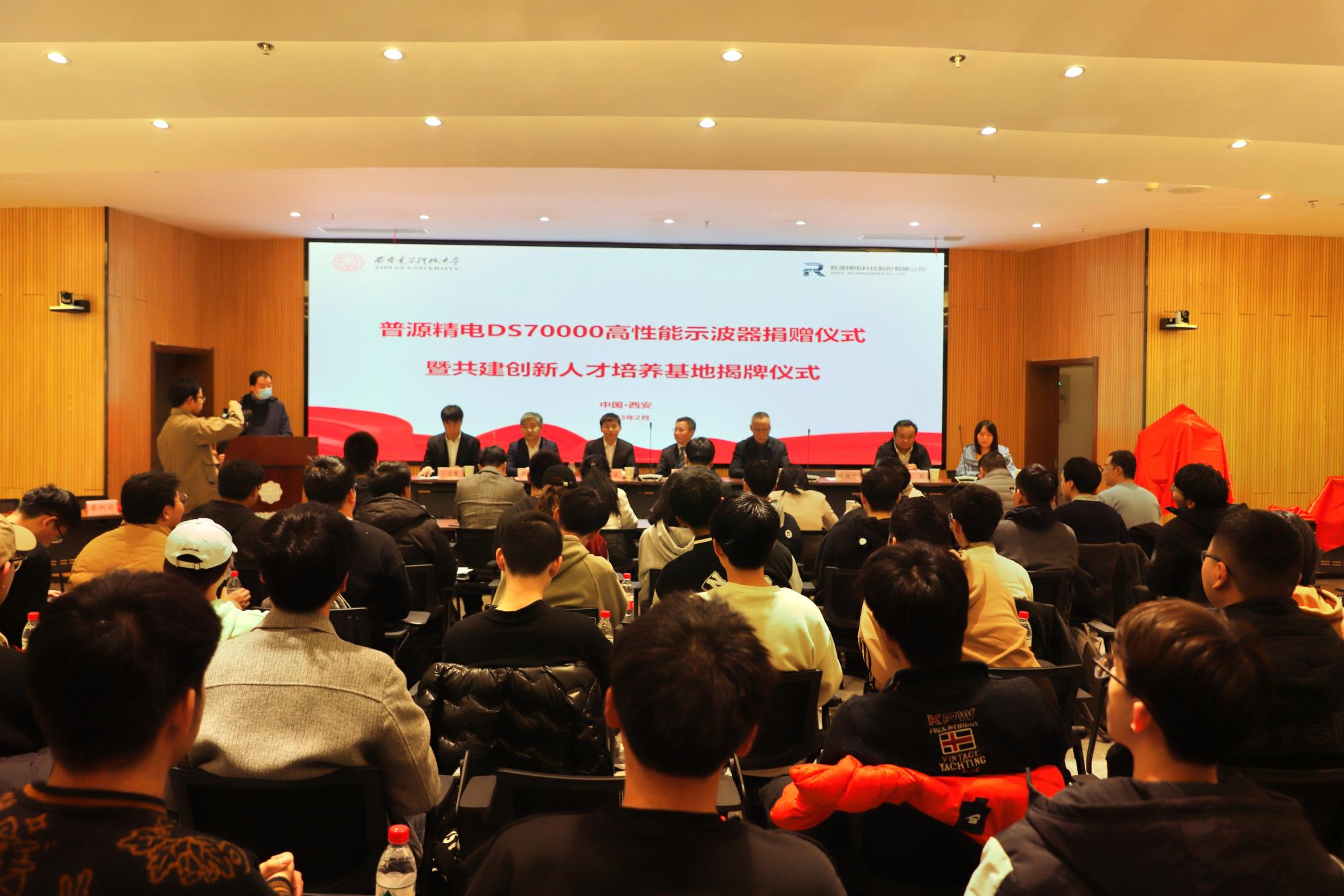 与普源精电科技股份有限公司在南校区会议中心103会议室举行了仪器捐赠暨创新人才培养基地揭牌仪式。普源精电科技股份有限公司董事、总经理王宁,首席技术官严波,北京研发总监何毅军,教育计划经理江佳慧,销售经理马超,做爱自拍