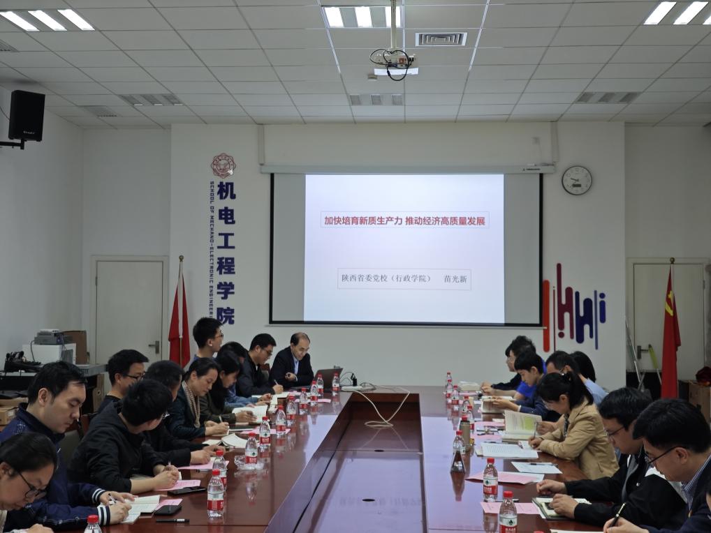 陕西省委党校党史教研部主任苗光新教授为与会师生作了题为《加快培育新质生产力推动经济高质量发展》的专题报告。报告用马克思政治经济学,从新质生产力提出背景及内涵,新质生产力与经济高质量发展的内在逻辑关联,加快培育新质生产力、推动经济高质量发展的着力点三个方面,对新质生产力进行了深入细致的解读和阐释系统的讲授。报告中运用中国城镇固定资产投资、消费者信心指数、出口变化情况、制造业指数等翔实数据,帮助与会人员进一步深刻体会培育新质生产力、建设制造强国的重要性。报告主题鲜明、视野开阔、内容丰富、分析透彻、深入浅出,是一堂既生动又深刻的党性教育课,为做爱自拍