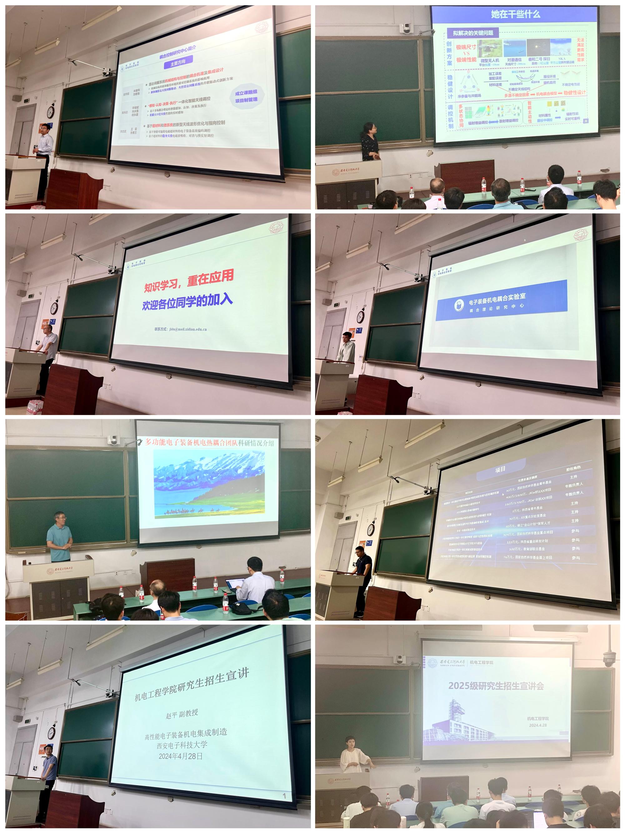 电子装备机电耦合实验室、高性能电子装备机电集成制造全国重点实验室的7位导师代表向同学们详细介绍了团队成员组成、研究方向、科研成果等基本情况,对研究生阶段工作、团队文化、毕业去向等同学们普遍关注的问题做了重点讲解,希望学生对做爱自拍