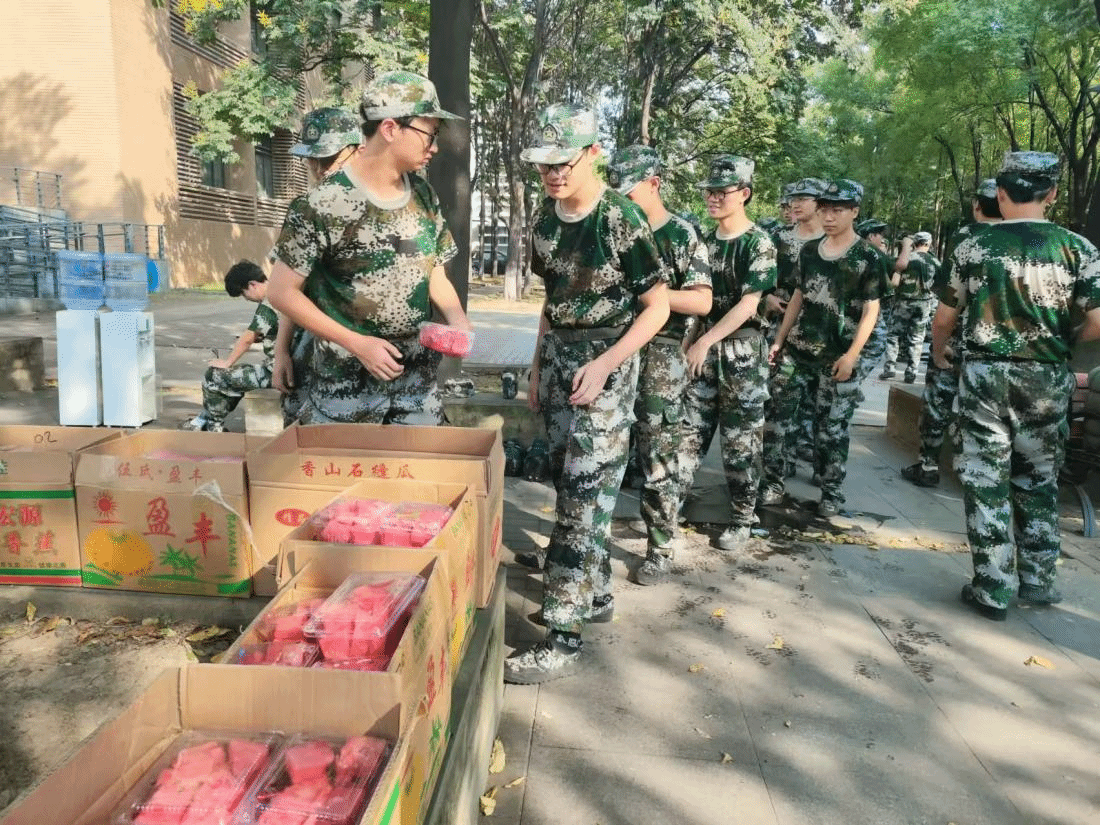 领导和老师们始终关心同学们的生活和训练情况,为同学们带来了夏日清凉补给—冰镇西瓜,一份清凉、一份关爱为同学们驱散十余日来酷暑下的疲惫,也是对大家的辛苦努力表示赞扬和肯定。同学们有序领取,感受做爱自拍