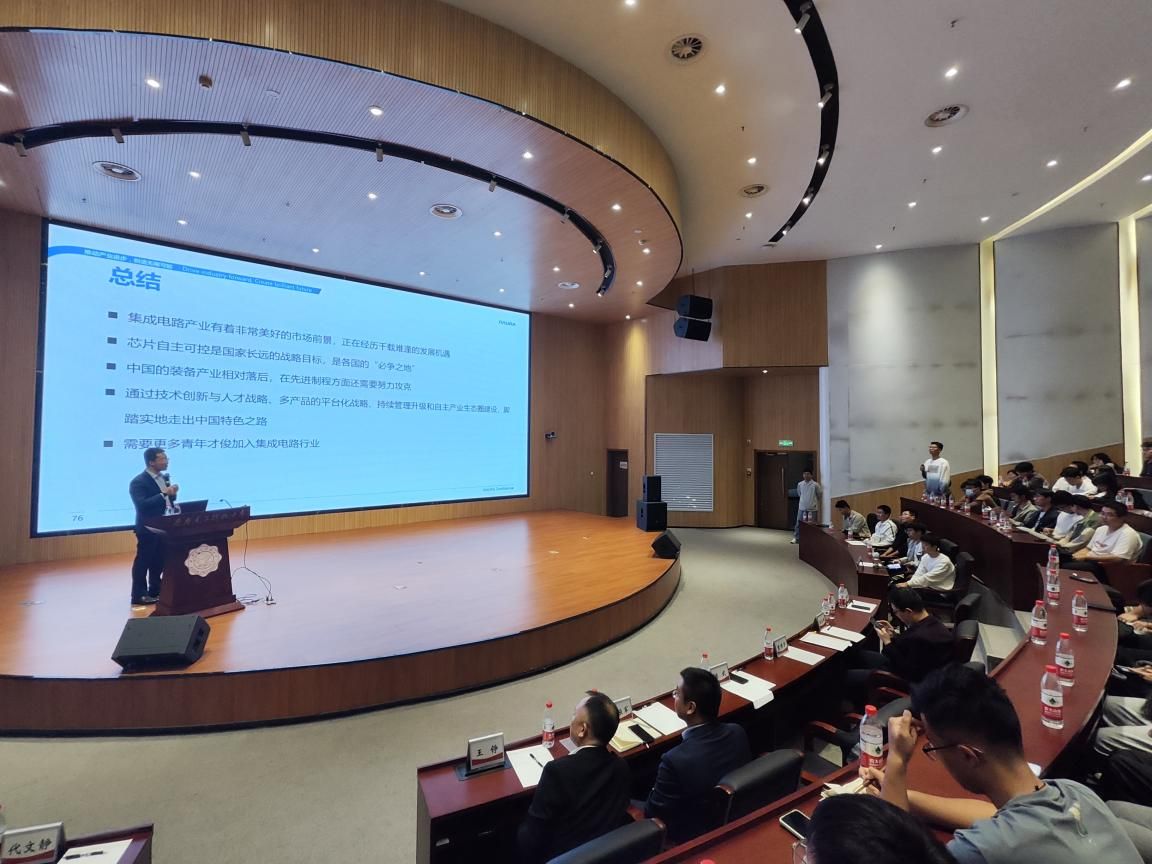 “集成电路装备自强班”专门开设“制造强国”系列课程。10月9日下午,北方华创微电子装备有限公司总裁董博宇受邀在南校区会议中心B101报告厅讲授第一门系列课程第一讲——《集成电路装备产业概述》,“集成电路装备自强班”的200余名学生认真聆听了课程,北方华创总裁助理夏振军,人力资源中心高校关系总监王铮,做爱自拍