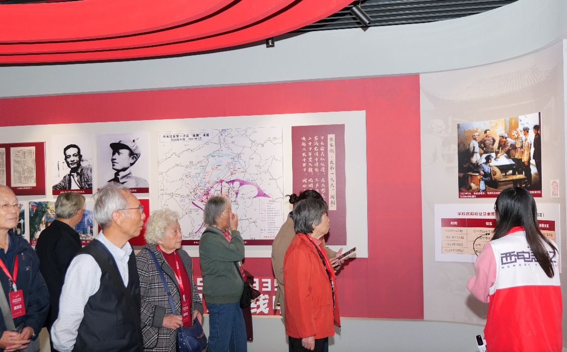 走进校史馆和博物馆,校友们穿越历史,共同追忆那段属于他们的美好且难忘的时光。讲解员从中央苏区讲到西北大地,从战火纷飞讲到九天揽月,馆藏的半部电台的展件、西迁西安的车票、长征路上办学的油画等一件件珍贵的展品,都令他们想起在西电求学的经历,以及西电人始终与党和人民军队同心同德、同向同行的历史。校友们为学校近年来的飞速发展和取得的成绩由衷地感到欢欣和骄傲。