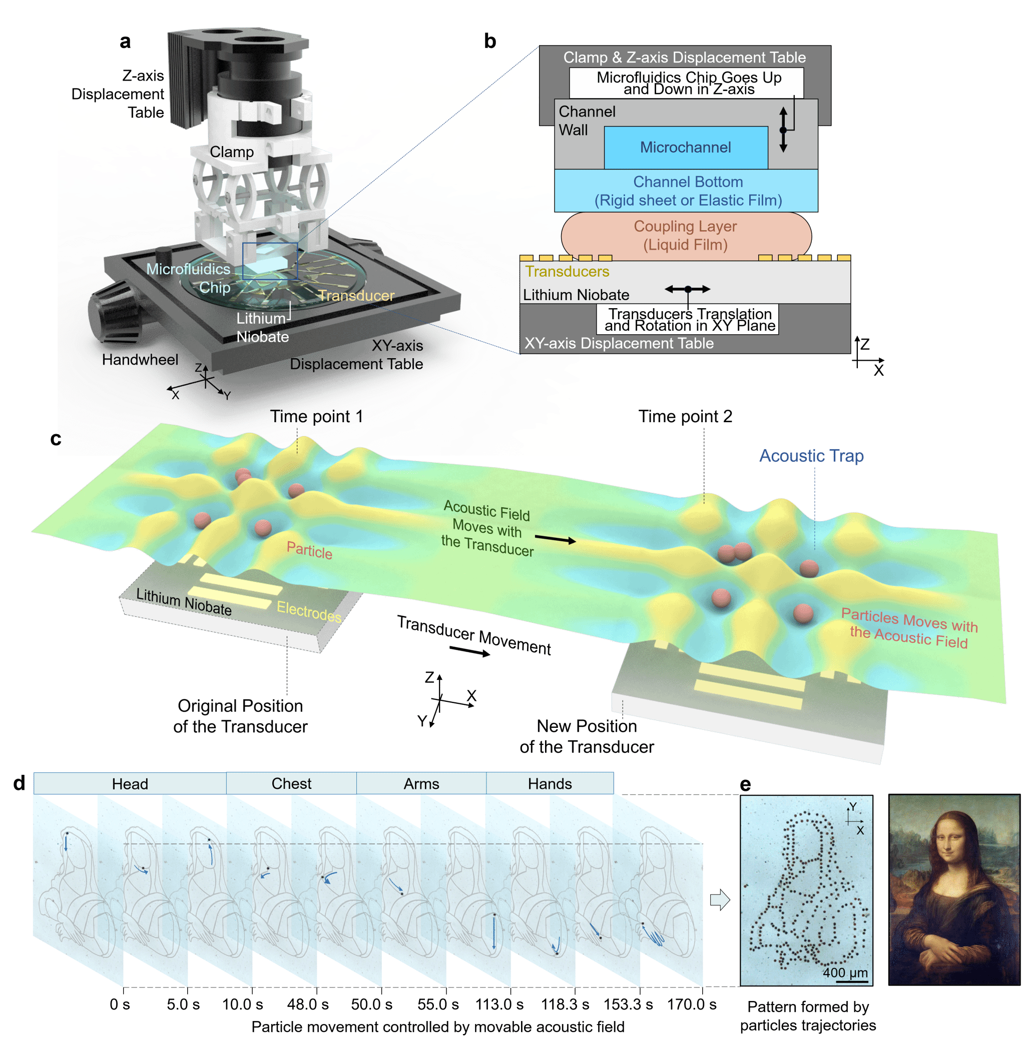 图1 可移动声表面波镊子系统能够在微米尺度精准绘制出蒙娜丽莎图案
