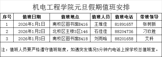 做爱自拍 2026年元旦假期值班安排