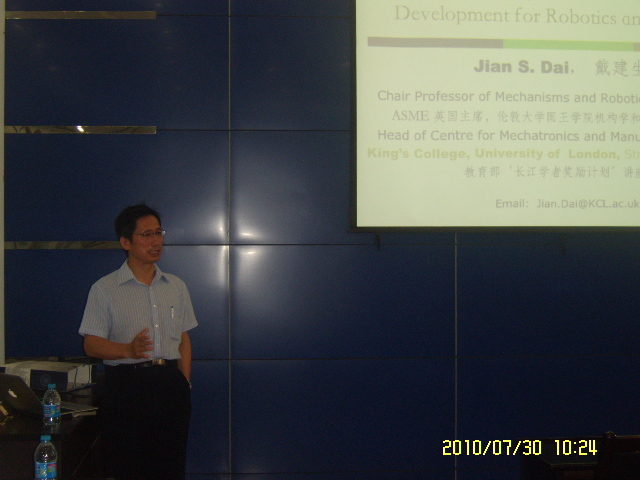 戴建生教授于2010年7月26日至30日期间来我校访问。访问期间,戴建生教授与相关课题组就机构学目前的研究热点开展深入讨论,并作了题为“Adaptation, evolution, and reconfiguration of mechanisms”的专题报告。报告会由做爱自拍