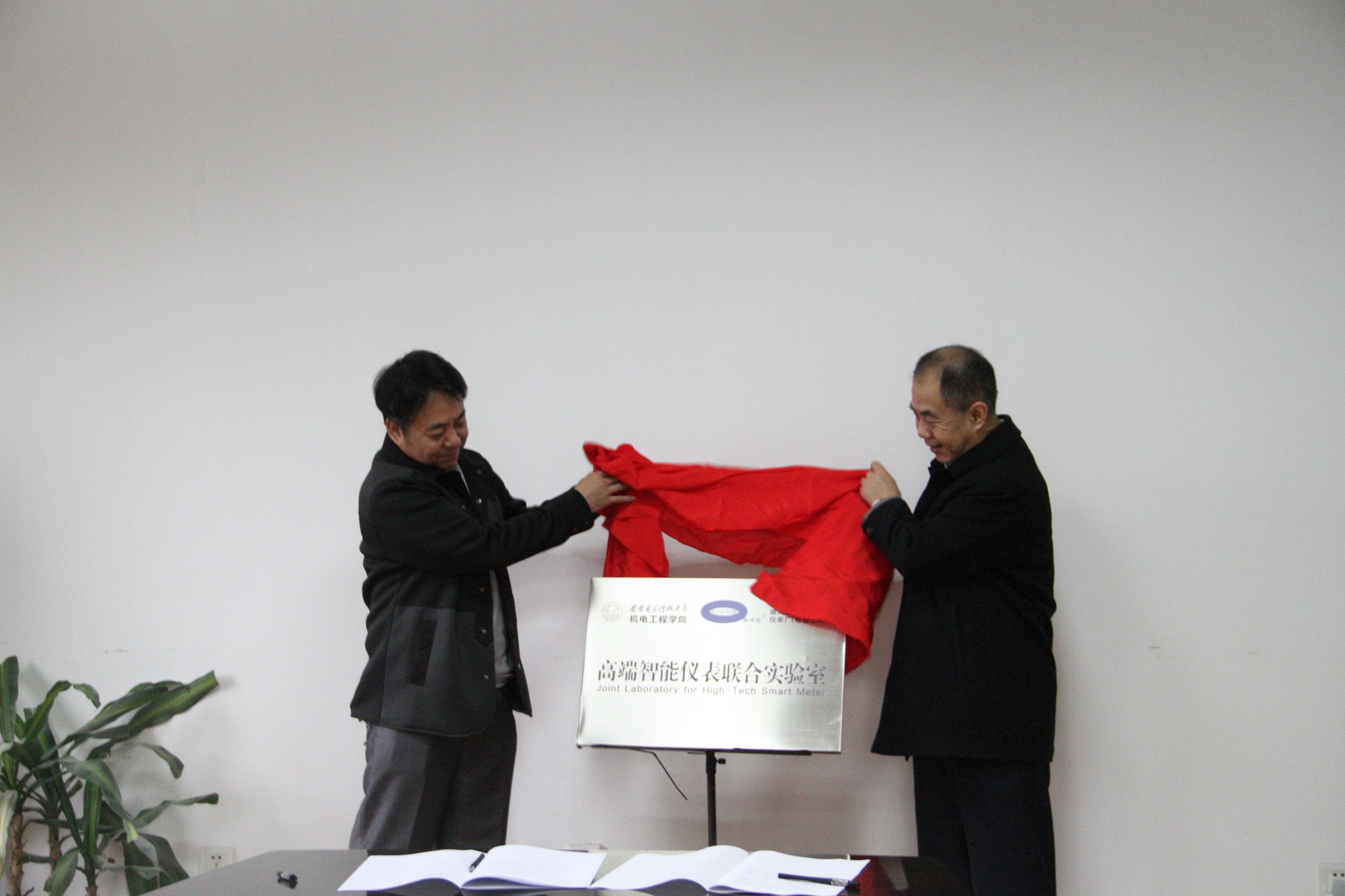 最后,仇原鹰院长和唐力南董事长共同签署了“高端智能仪表联合实验室”产学研合作框架协议并为联合实验室揭牌。