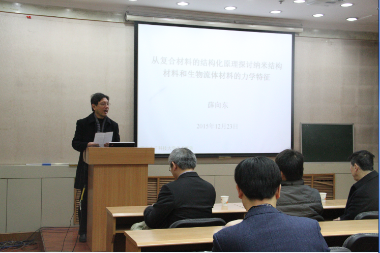 院长仇原鹰教授邀请,英国纽卡斯尔大学(Newcastle University)高级研究员薛向东博士于12月23日来校进行学术交流,并在北校区图书馆A108报告厅作了题为《从复合材料的结构化原理探讨纳米结构材料和生物流体材料的基本力学特征》的学术报告。报告会由做爱自拍