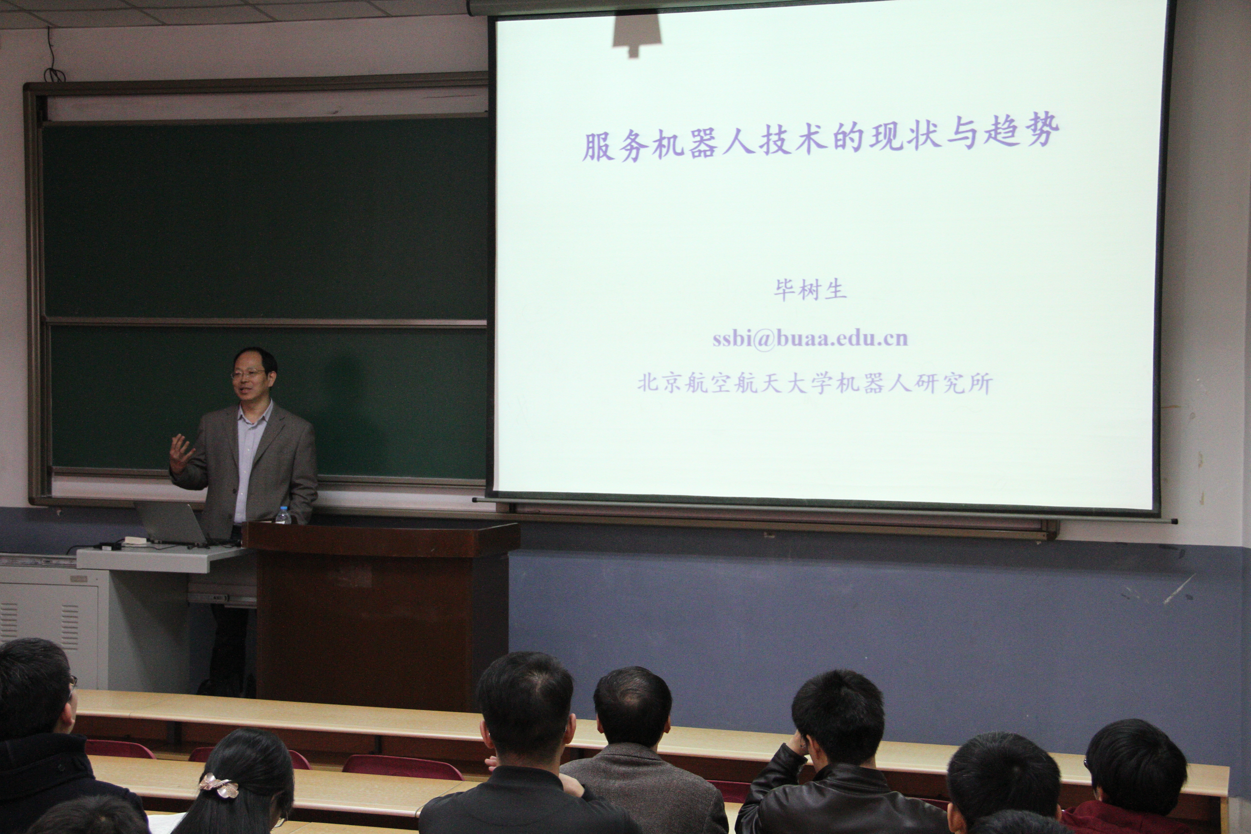 智能制造与机器人技术工程研究中心陈贵敏教授邀请,北京航空航天大学机器人研究所毕树生教授来我校访问交流。5日下午,毕树生教授在阶梯教室J-204做了题为《服务机器人技术的现状与趋势》的学术报告,报告会由做爱自拍
