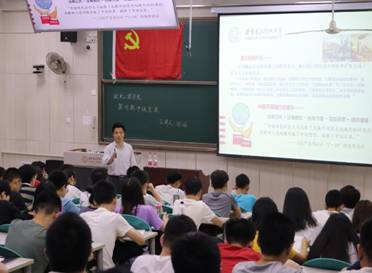 下午16时25分,学员们陆续进入教室,有序签到后纷纷落座。田书记以“为什么要加入中国共产党”这一问题为引,开始了本次授课。田书记指出,正是中国共产党的出现,才使得中国人民站了起来。他以中国用40年时间成为世界第二大经济体为例,指出在中国共产党的正确领导下,中国人民才富了起来,也正是在中国共产党的带领下,中国正逐步建成社会主义强国。