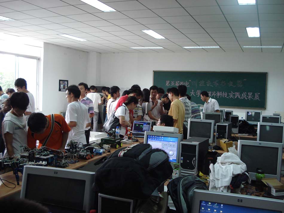 前来参加展会的还有07、08级的学生,他们与作者交流、探讨,现场气氛十分活跃,洋溢着同学们的智慧与创新精神,充满了科技的气息。23日下午,历时两天的会展圆满落下帷幕,体现了西电人对科技的追求,彰显了西电测控精神,深刻鼓舞着在场的每位学生。