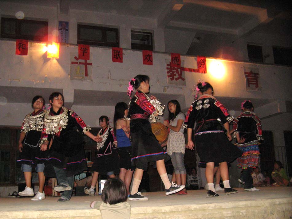 “青春建功实践队”,带着对于青春永不言败的信念,在两天的旅途颠簸后,到达了目的地,同学们不顾路途的疲劳,在到达的当日就开始了紧张有序地工作,支教、走访、调研等一系列活动开展的有声有色。同学们开展了针对小学生的指教活动,包括了数学、语文、英语、画画、音乐等课内知识。同时通过前期的准备,还带去了很多课外的知识,大家带领着村寨里的孩子们,认识外面的世界、学会感恩、确立志向,极大的拓宽了这个封闭村寨孩子们的视野。以此为基点,还对村里的大人进行教育宣传。同学们开展的一系列走访调研活动,覆盖了医疗、生活、经济、文化、教育、少数民族风俗习惯等深入生活的方方面面,并根据当地条件提出了改善方法。为了更好丰富村民的生活,晚上在学校操场播放电影的,吸引了全村的目光,开拓了眼界,通过电影看到外面的世界。同学们举行的运动会,让孩子们在玩的过程中体会到乐趣和竞争;筹办的富有民族特色的联欢晚会,给了孩子们一个展示自我的机会。