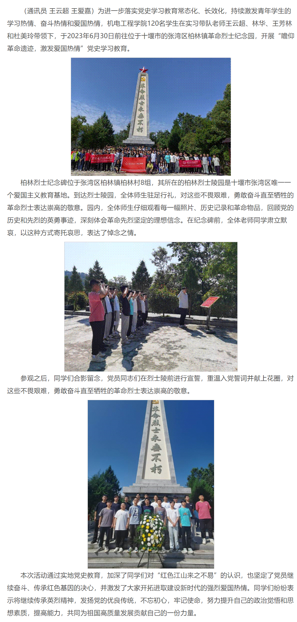 做爱自拍 赴十堰生产实习师生开展“实习不忘革命先烈,陵园重温入党誓词”党史学习教育