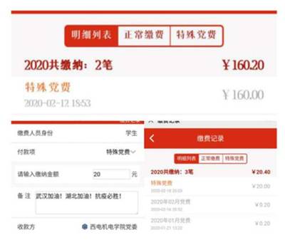 “机电先锋号”特殊党费支付截图