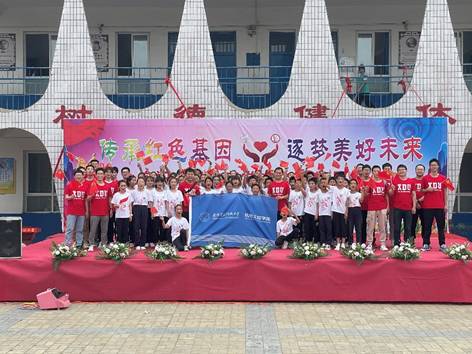 此次庆祝建党100周年文艺演出龙池镇中心小学的师生们穿着统一的文化衫进行表演,这件“永远跟党走”文化衫是由机电院和龙池镇中心小学的老师一起设计,机电院出资购买。