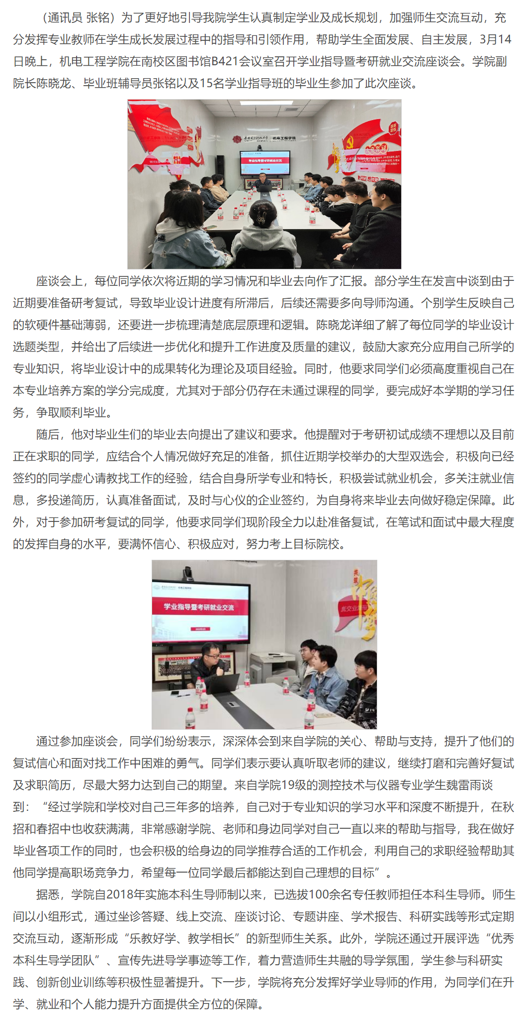 做爱自拍 召开学业指导暨考研就业交流座谈会