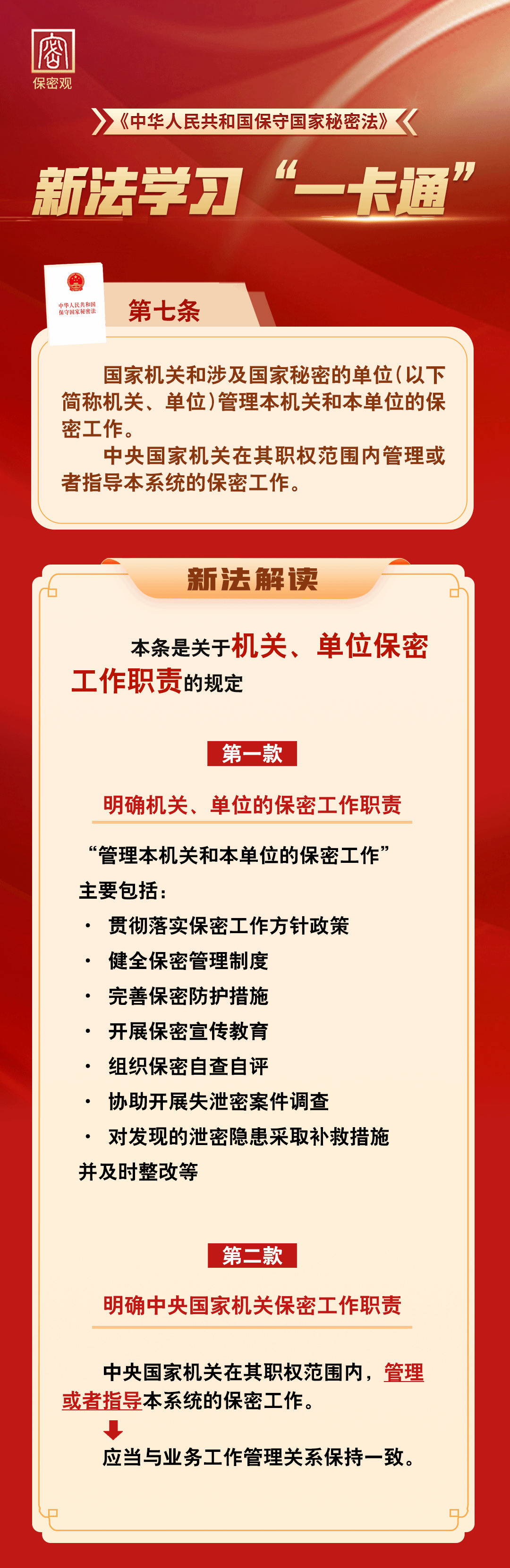 37个保密宣传月 | 新法学习“一卡通”之第七条 机关、单位保密工作职责