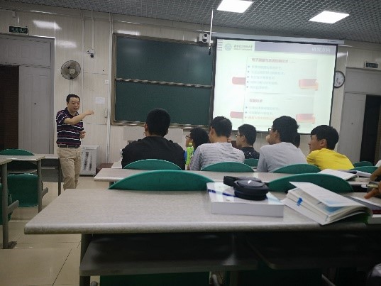 在介绍完专业总体情况后,陈晓龙教授针对智能物联感知与微波测试课题做了详细的介绍,阐述了当前此研究方向的重要性和在实际工程中的广泛应用,如沥青路面施工智慧监管系统、智慧物流冷链监测管控系统、智慧集输管道监控系统等。随着智能物联感知与微波测试的工程应用,办公效率得以大幅提高,工程安全性更进一步得到保障。随后,陈教授为同学们讲解了团队参与研发的海上综合监测控制系统。