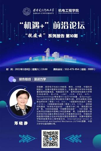 的邀请后,她第一时间准备了报告素材,希望通过漫谈的方式跟大家探讨力学研究。郑晓静深入浅出,从力学的历史和特点说起,娓娓道来,引人入胜。她用五个例子生动地展现了力学的重要性,从十二位力学学科出身的国家最高科技奖获得者和著名的钱学森大师,到黑障、沙尘暴和极端力学,再到不同防护工具对于新冠疫情防控重要性的分析,表明力学已经渗透到生活中的方方面面。她讲到,在面对复杂的工程问题时,力学作为一个重要的基础学科发挥着重要的作用,通过揭示普适规律推动工程技术不断进步。尤其第五个例子,让身处疫情笼罩下的广大师生又有了更多的见解和更深刻的思考。