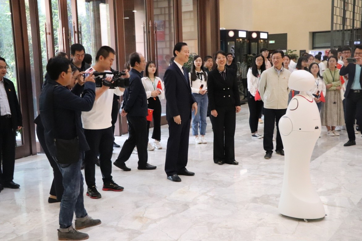在书院新人“小暄”和“小思”的带领下,西电师生一行步入书院“依靠学习、创造未来”大厅,一边听着讲解,一边感受着延安的传统文化、革命文化和现代文化的博大精深。在中国梦展厅师生们深入地了解了习近平总书记治国理政新理念、新思想、新战略,进一步坚定了不忘初心、砥砺前行的信念。