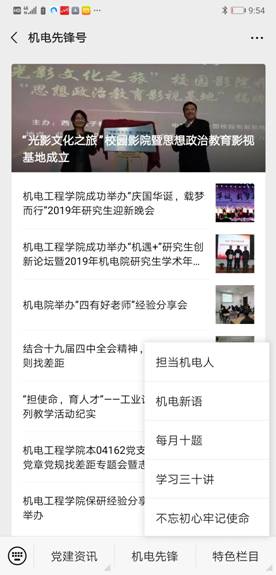 党建微信公众平台"机电先锋号"